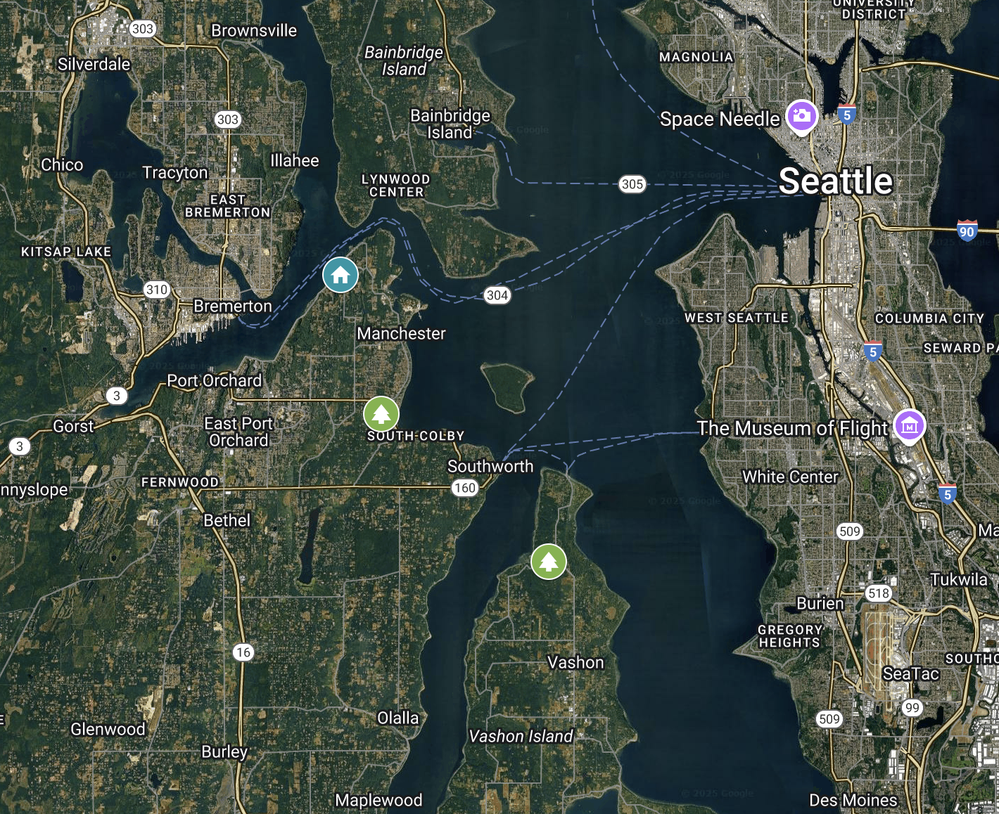 An eight acre forest on the north side of Vashon island bought in March, 2025.