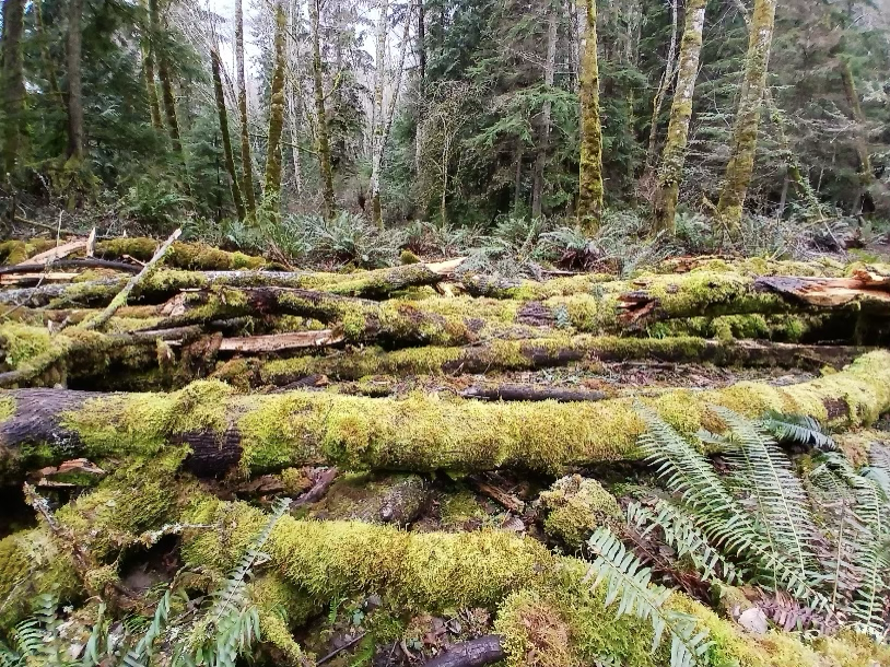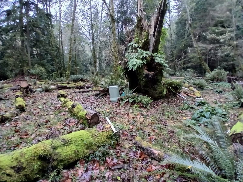 Early in 2025 we had a huge Big Leaf Maple fall across the labyrinth, taking down another big leaf maple. Looking at the broken stump, it appears that the maple roots spread out five feet above the ground, and there is a lot of air beneath where the roots eventually reached the soil.