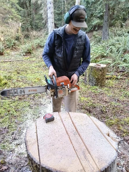 Talk about better specimens of logs for marking the rings! We had 30 inch diameter logs by the dozens, and smaller ones by the hundreds. We cut out some bowl blanks for an island woodworker’s use. But most of the big logs stayed very close to where they fell.