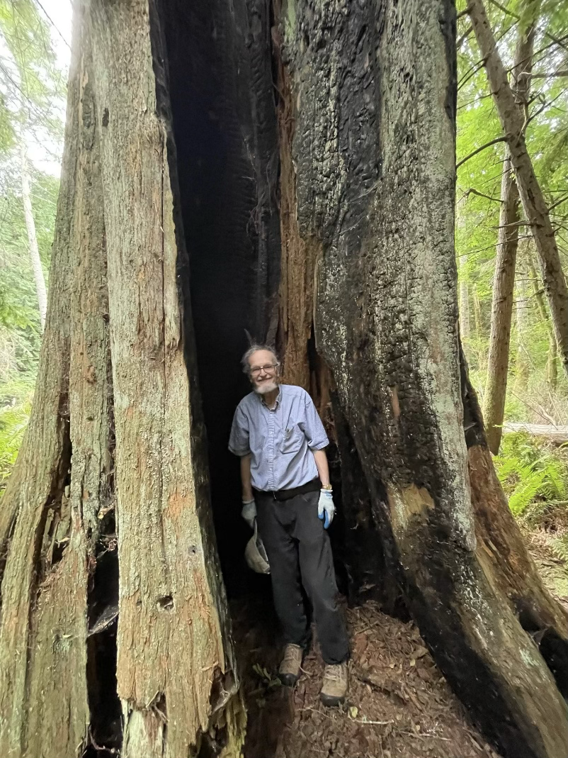The Hobbit lives in a hollow big leaf maple, which received a lot of damage from the falling maple in the winter ending in 2025.